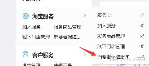 进入界面后,点击左下角“淘宝服务”,选择“消费者保障服务”。