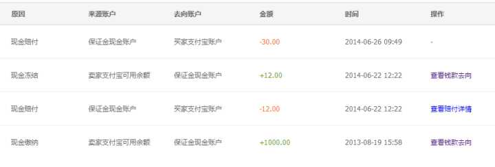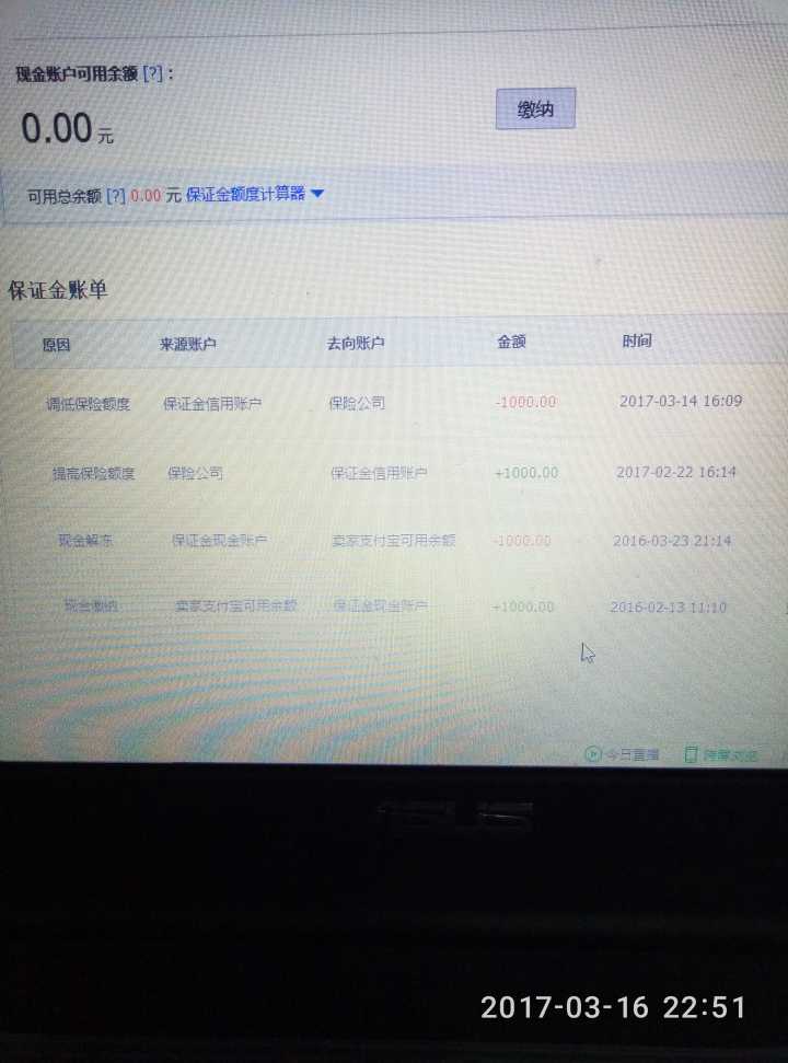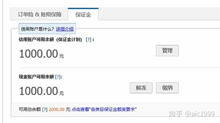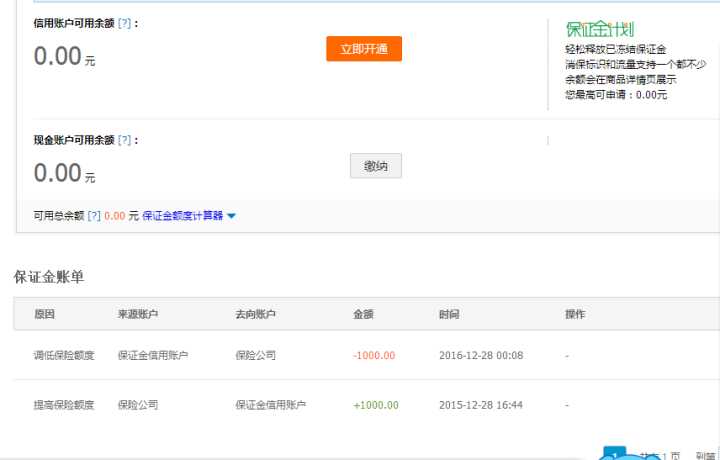 2、14年中淘宝推出保证金计划,把1000块退还到余额了。。。如下图