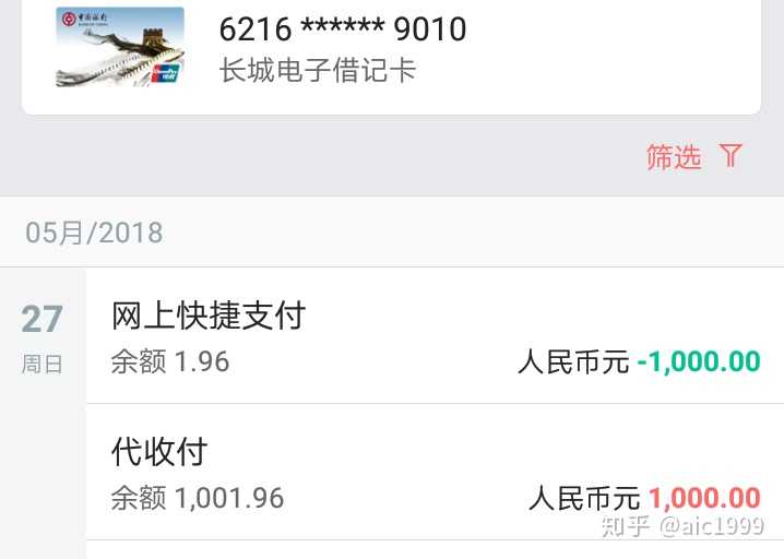 第二个:银行卡转出1000到余额
