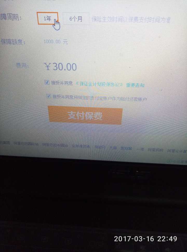 印象中,我是先使用余额宝缴纳了必要的30元保险(我以为这是强制的,类似平台管理费之类的)。