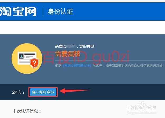 4.在淘宝认证窗口,需要提交复核资料