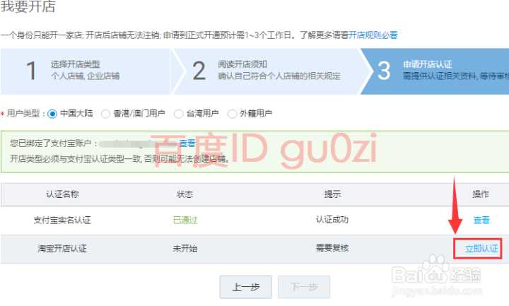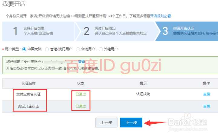 6.在通过认证的情况下,才能激活店铺,回到第3步的窗口,进入下一步的操作