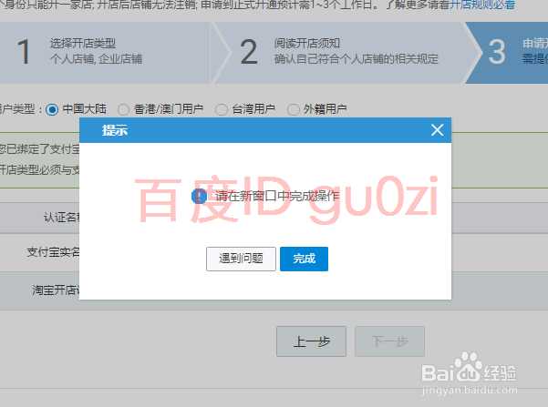 3.接着进行淘宝开店认证,在弹出的新窗口中进行操作