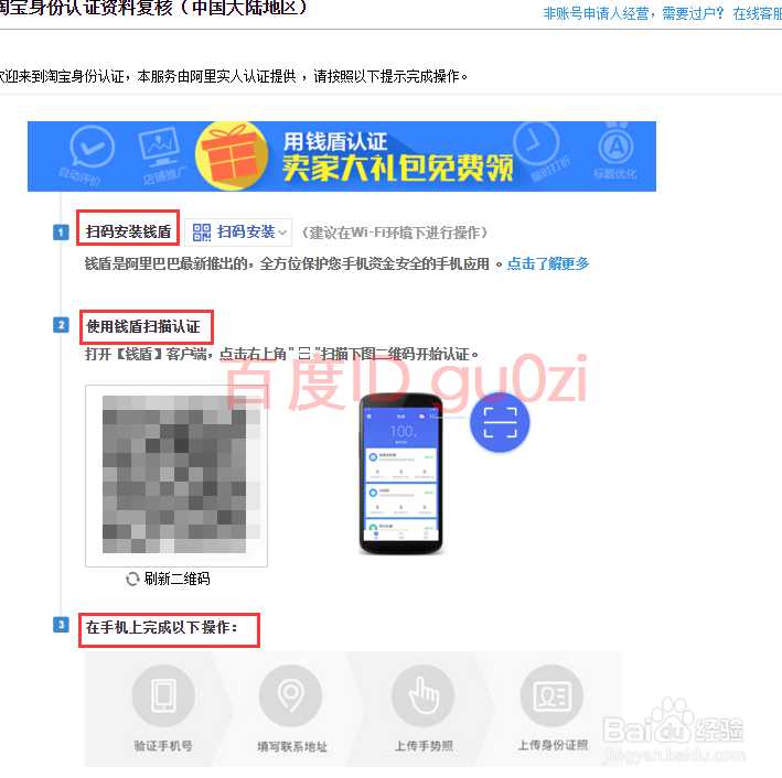 5.在手机上安装钱盾软件,然后进行扫描认证