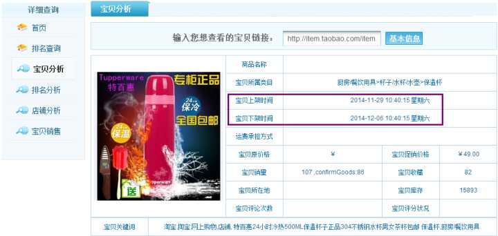 使用工具:淘诊断-宝贝分析-输入宝贝链接-基本信息。