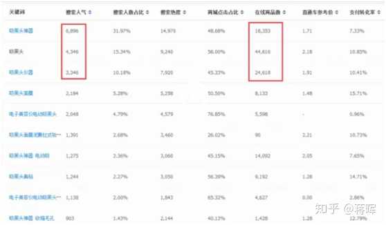 (日搜索人气代表着这个市场有多少需求,有多少人搜索,而在线商品数量代表着这个市场有多少人在供给。