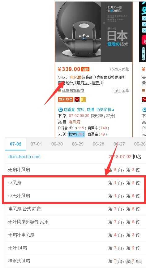 比如这个产品的“sk风扇”和“sk无叶风扇”两个词