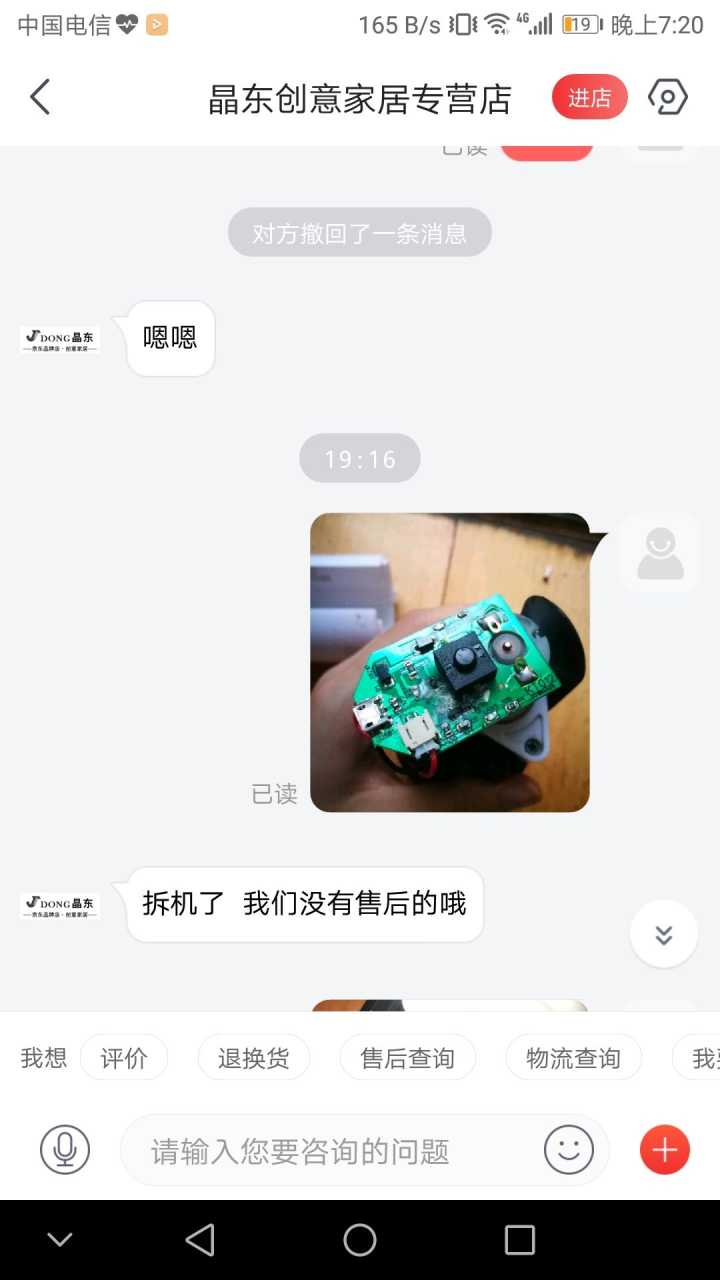 在京东买了个风扇,一打开后面烂了,好吧,反正没有多少钱能吹就行了,然而,打开了关不上什么鬼。找客服,她是给我的是全新的好风扇,反正就是话里话外是我自己倒霉,找京东客服也是各种敷衍……我想知道QQ里的京东购物怎么关了?