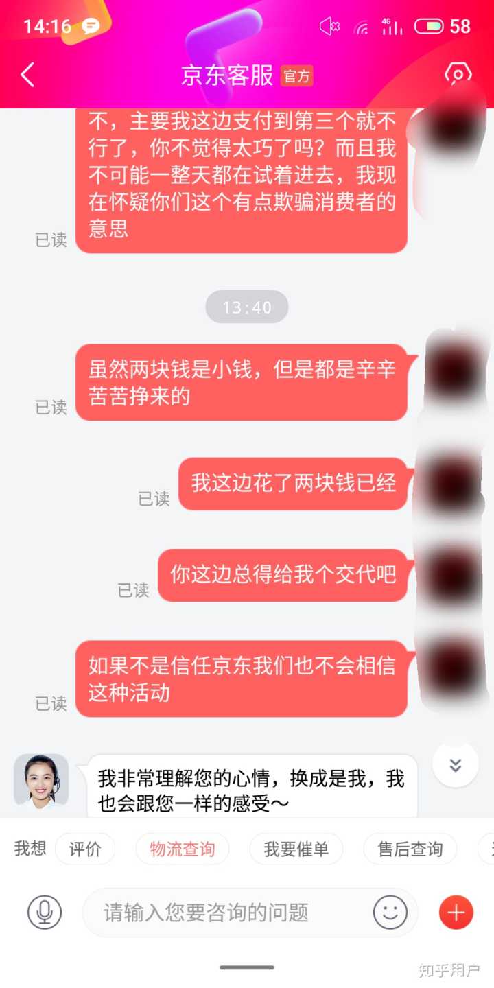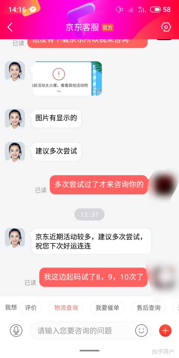 当下我意识到自己被骗了,咋这么巧第一个第二个没有活动火爆到最后才这样,然后我立马咨询了京东客服,并且跟她讲了一大堆,但是