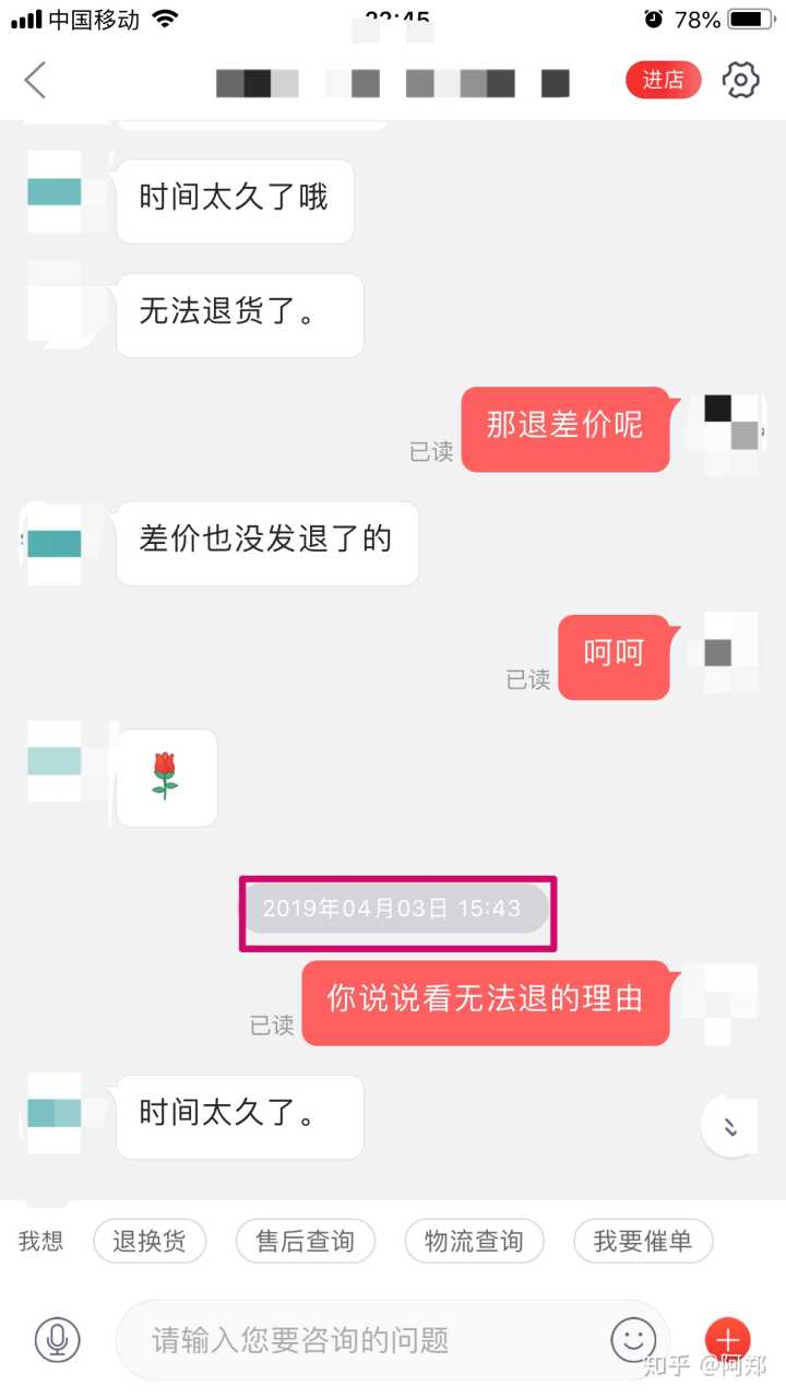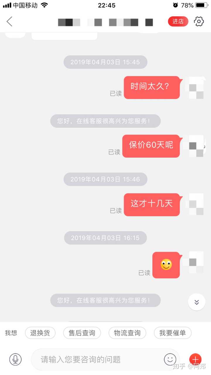 这个客服极其高冷,我说这么多,她就回我一小句,回复的又慢,耗费了我极其昂贵的时间!真是让我想起了之前跟我喜欢的人聊天时的情景