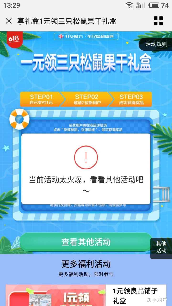 起因是我那可爱的母亲看到了京东上面的一个1元购活动,就是先支付1元然后邀请2个好友每人支付1元然后购买得到三只松鼠坚果礼包的活动(说实话因为贪小便宜真的容易被骗),但是因为信任京东所以我也帮她花了1元买了,但是到最后一个支付的时候点进去显示活动火爆叫我看看其他活动