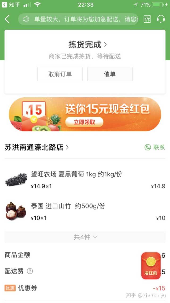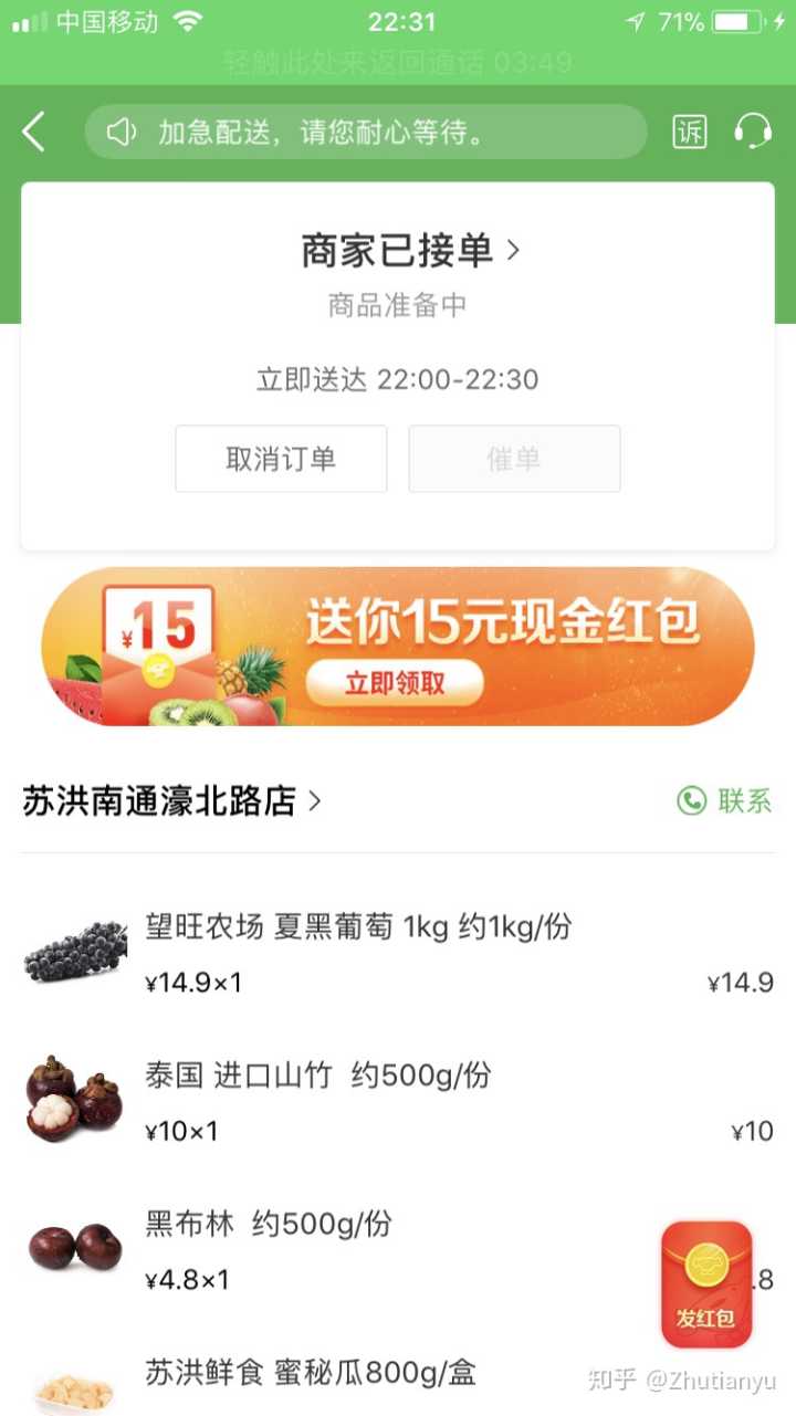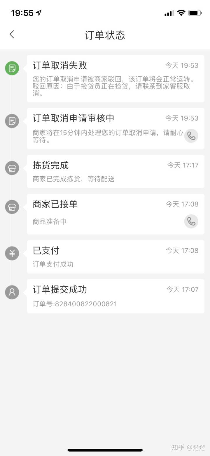 然后我就取消订单了,还特么要十五分钟审核,淘宝退款都是秒到账,一个没给人派送的订单还要十五分钟核实,脸呢?