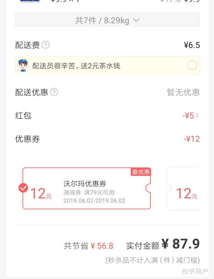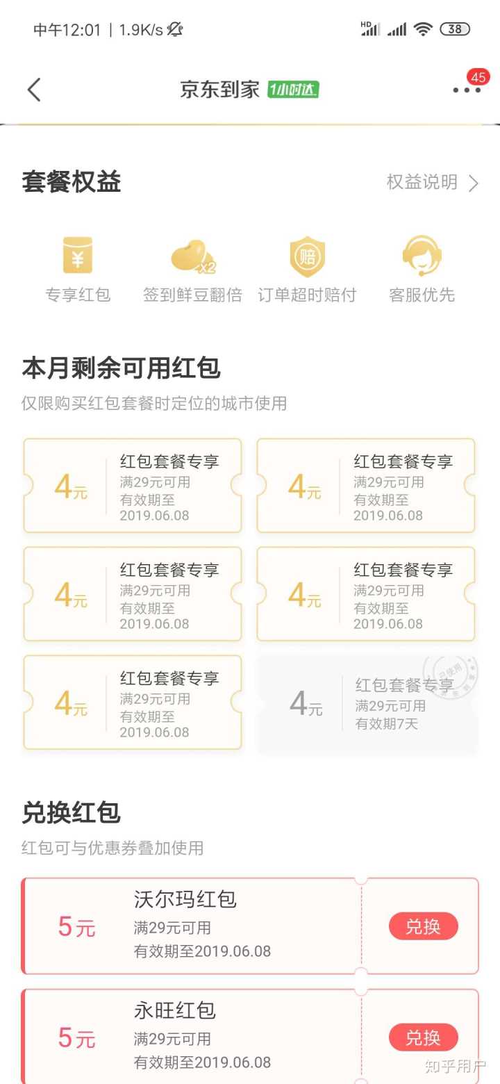 从后续来看,所谓的“免运费”对应的是第一项“专享红包”,也就是说用“专享红包”扣除掉“运费”,于是得出“免运费”。即便如此,红包使用条件也有限制,第一,满29使用,较之其他平台的会员红包无门槛使用,京东的设置了门槛;第二,减的金额,4元,但是我选的订单基本都是起送就要4.5了,也不知道有没有低于4元的,再加点就要6.5了,减4块,你告诉我这是“免运费”???第三,达达专送,不是这个的话也无法使用哦。