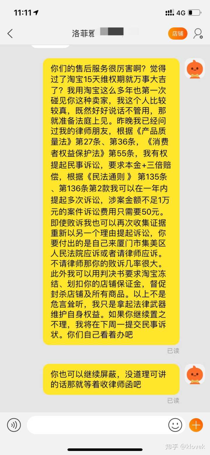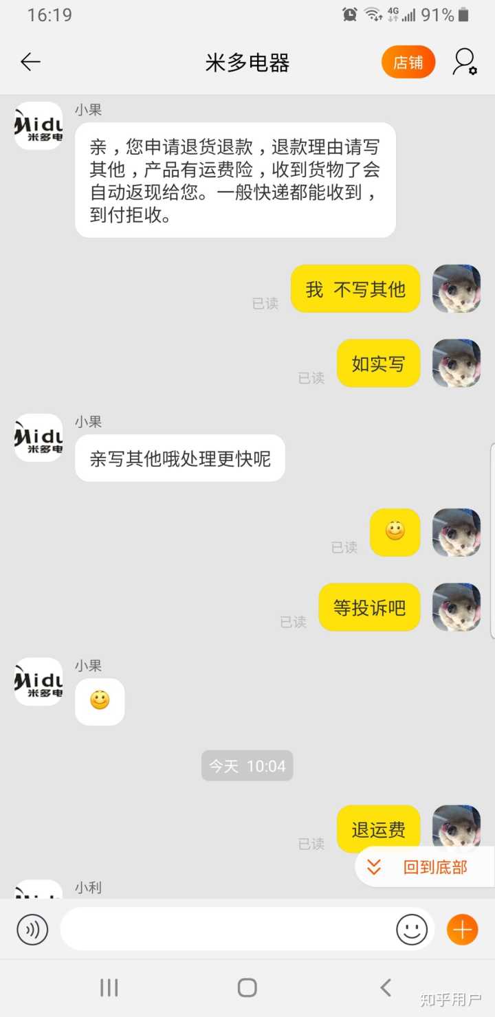 昨天傍晚打的电话,今天淘宝卖家就来找我解决问题了,我的妈诶没投诉前售后牛的呀!搞事情!(店没了警告! )经过协商于是全款退给我加上我寄过去的运费!