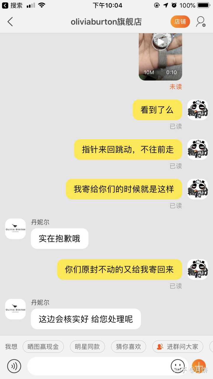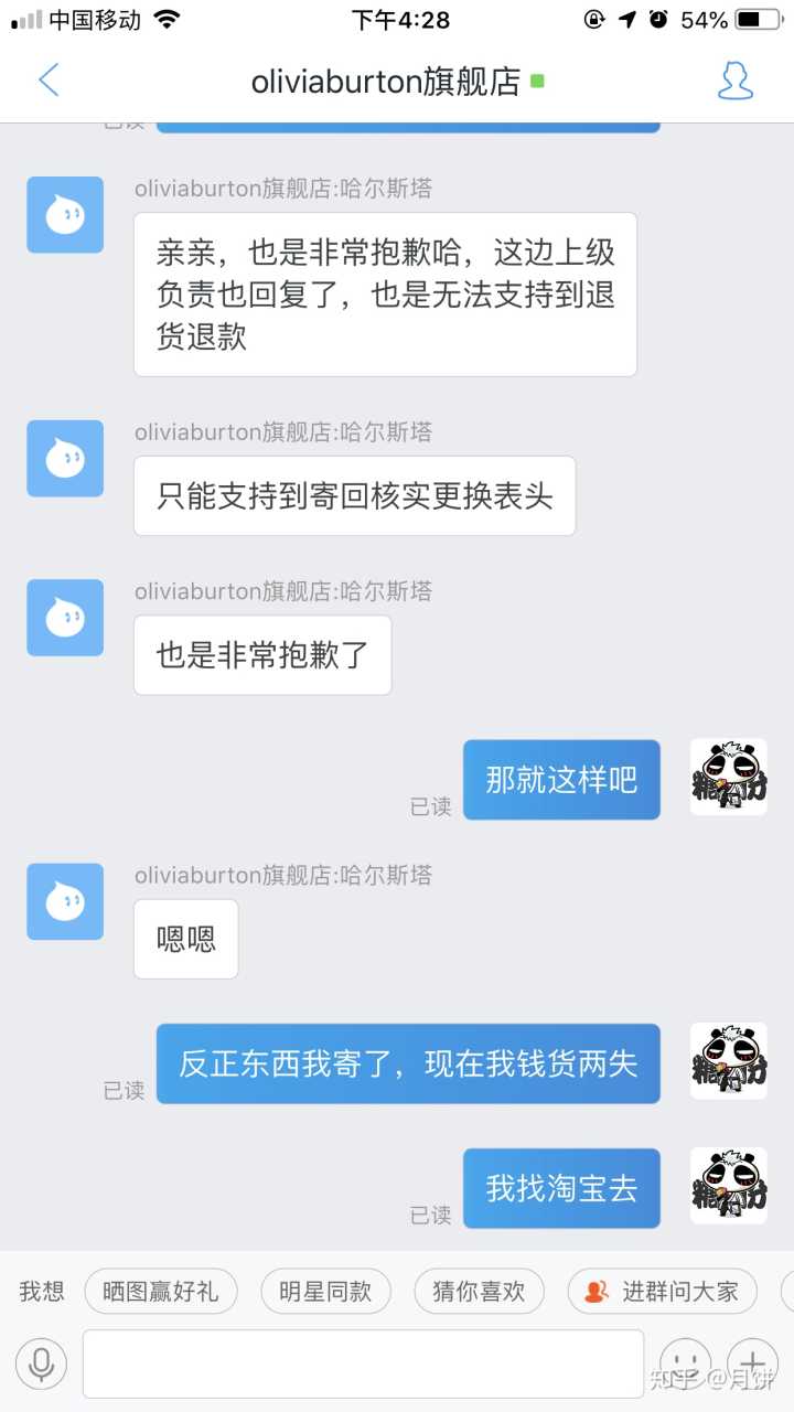 表寄过去以后,今天Oliviaburton那边选了拒绝退款,没办法我就只能请淘小二介入了。因为表寄了,手里的证据只有当时第一次维修的单子(上面有我手表检查的情况),和客服的聊天记录。商家上传的是我手表的照片还有他们质检的一些证明。就在刚才淘宝小二判我输。(不知道是不是因为我漏接了淘宝小二的电话,因为在外面有事所以没接到)