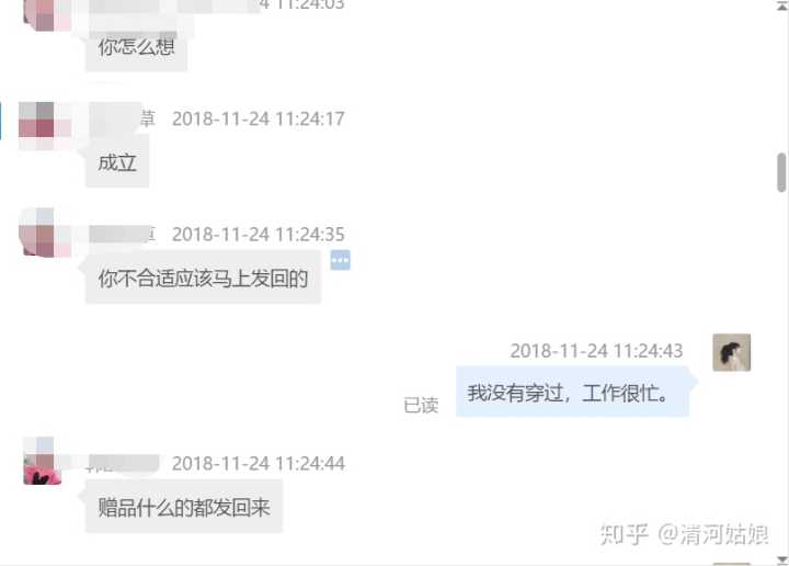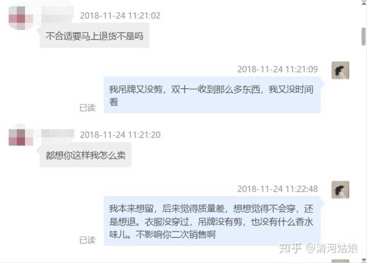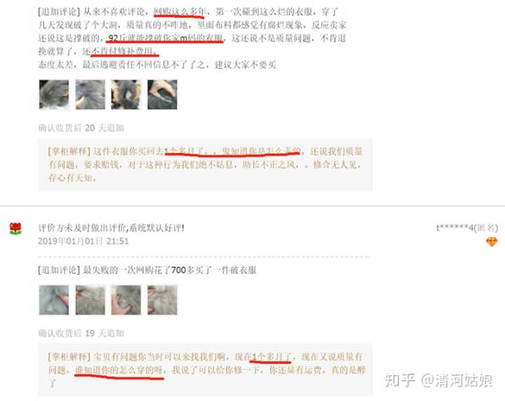 群里确实没有一个人跳出来说过衣服品质的问题,我原本以为只有我收到不好的衣服,原来是有很多人真的会嫌麻烦或者怕群主面子过不去,自认倒霉!