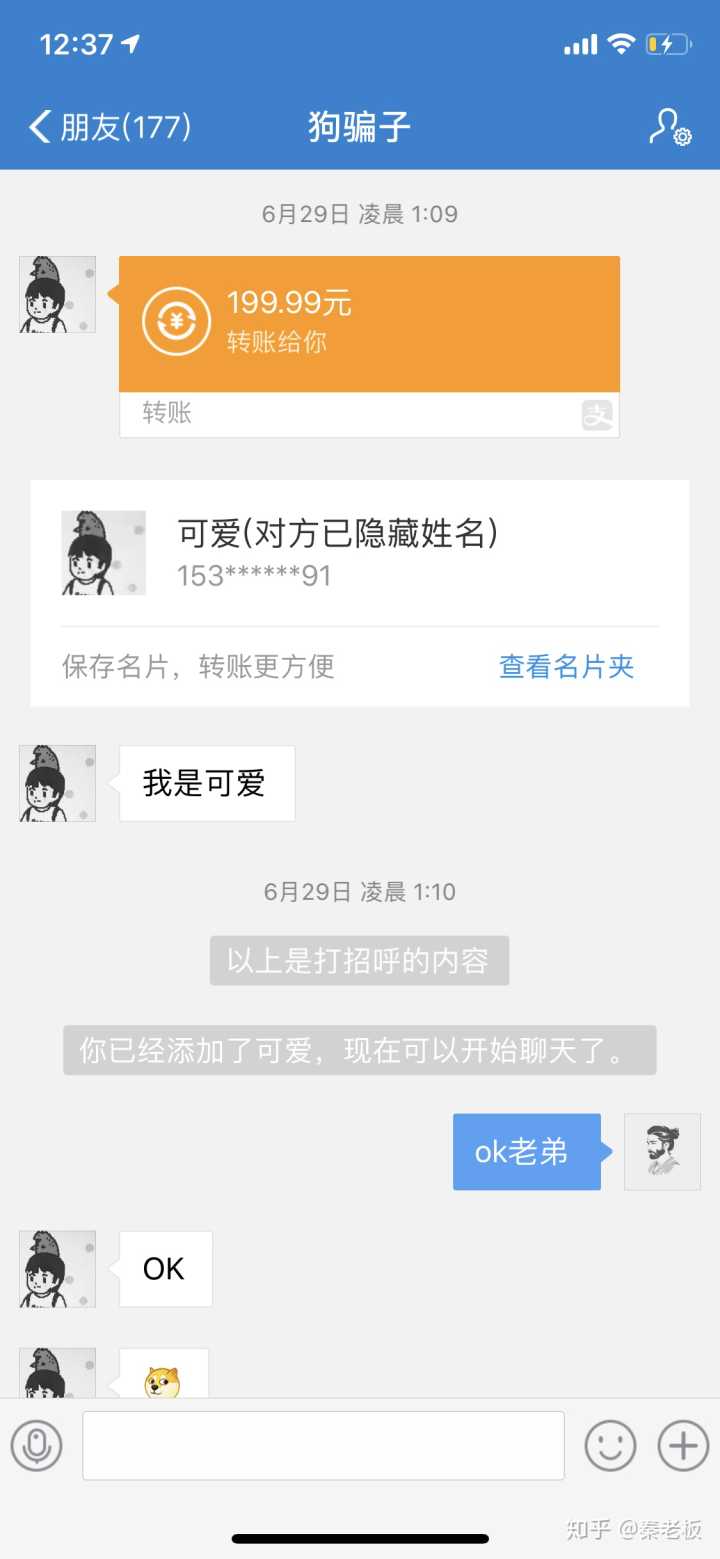 我直接给顺丰小哥打电话,小哥说这个骗子早上给他打电话说货到了别送宾馆送一个十字路口他去取,也就是说要隐藏地址。我太单纯了。最后我一直给他发微信打电话一直不回要不就挂。晚上他回复我了,说他忙了一下午。我寻思那没事给钱就行,结果开始了无理纠缠。说让我给他把定金转回去,他统一再给我转回来,我寻思你当我是沙雕么再让你骗200?