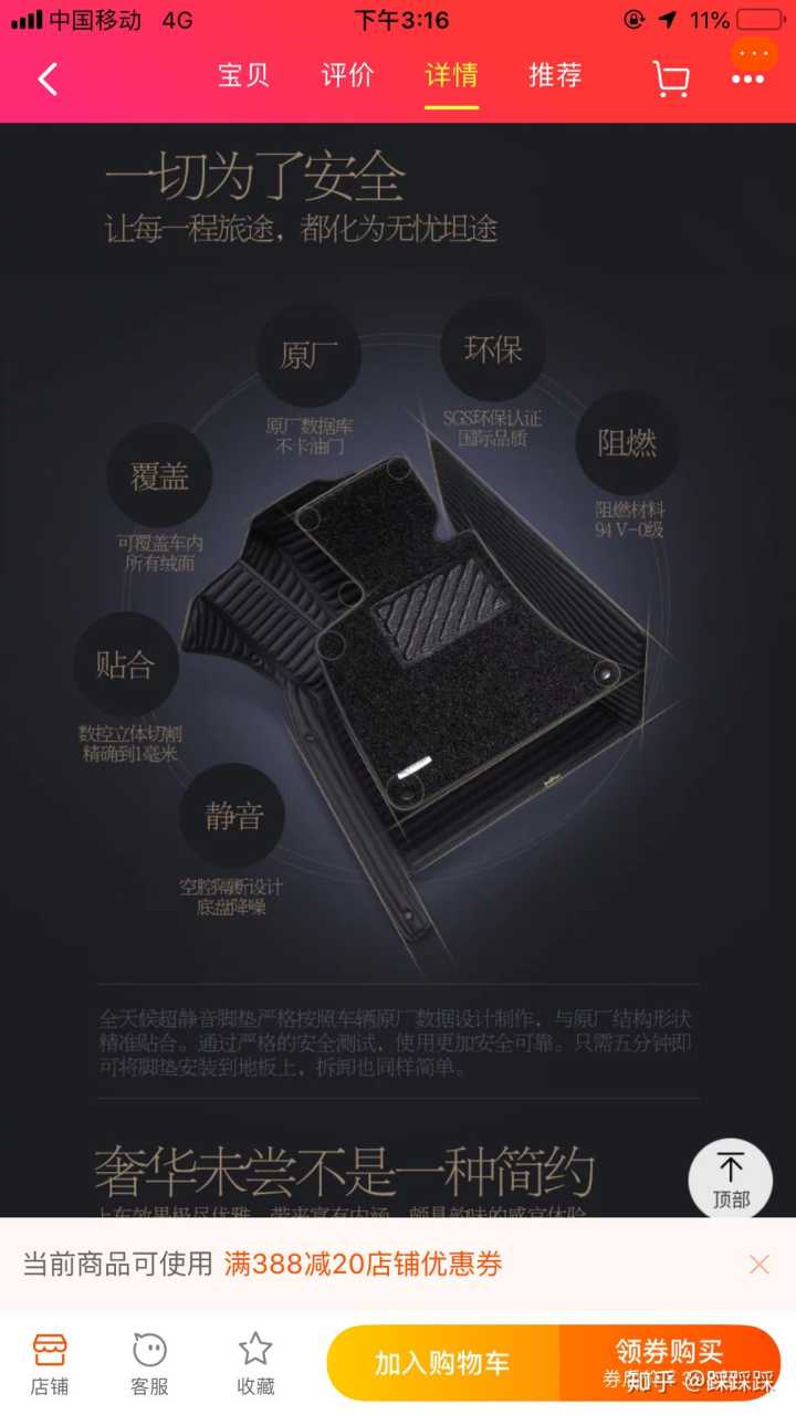 今年3月19号在网上买了一个定制款的汽车脚垫,看评论真的很好。买家秀也是很不错的,虽然价格有点贵,还是买了。宣传里是这样的