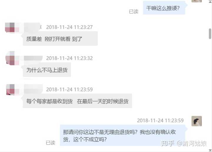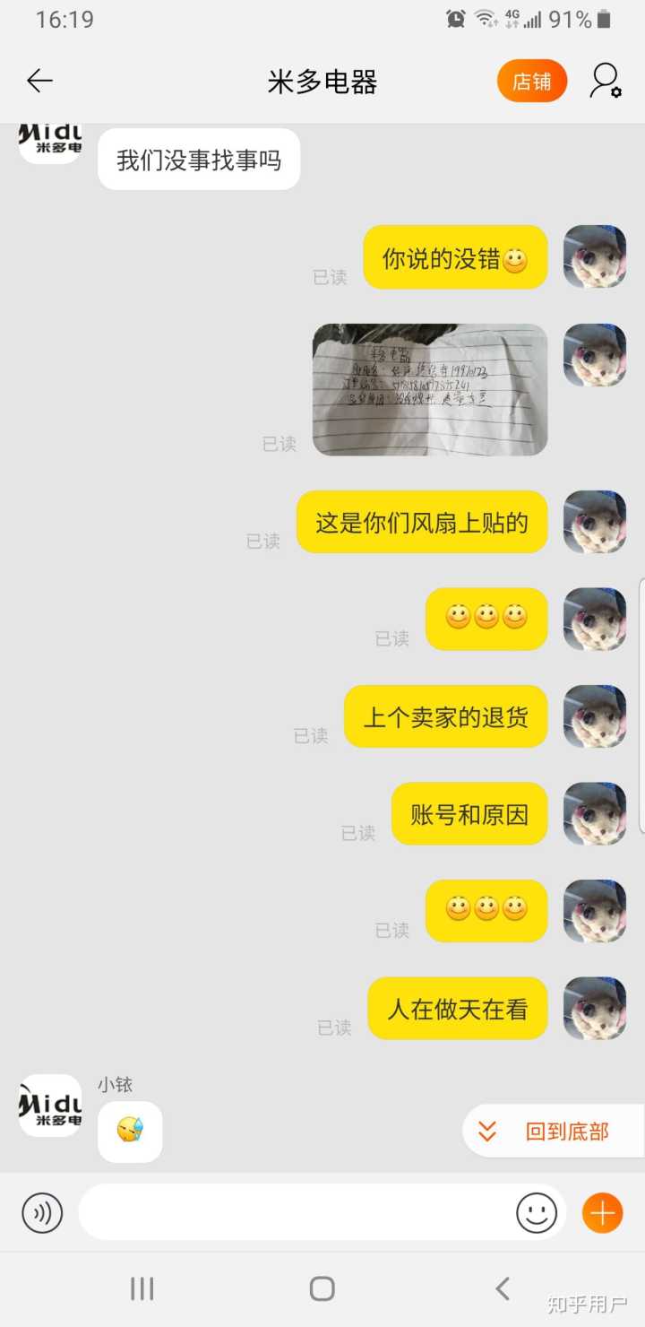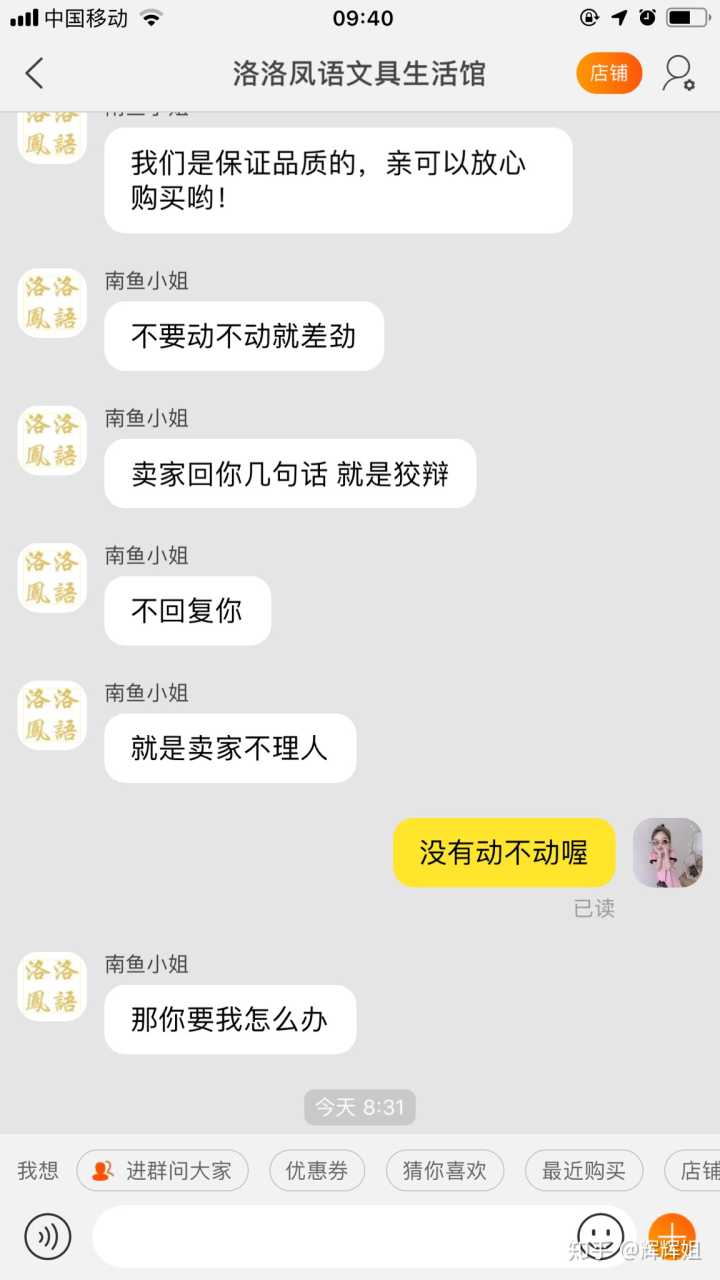 没想着讹她钱,也没想着恶意差评,就是当时那会火就上来了。正常卖家可能就事论事,就质量问题卖家看了会说说抱歉的话,也许我会考虑撤掉差评了。