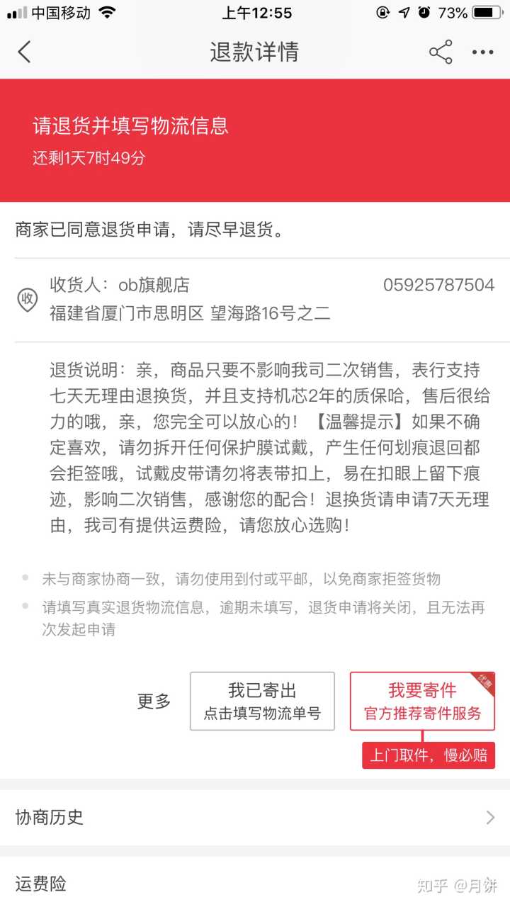 这次维权让我知道一点就是,退换货官方会尽力引导消费者把理由改成七天无理由退换,很多人想快点拿到钱就改了,但是里面是有套路的,因为七天无理由退换的前提是不影响二次销售,如果因为质量问题要退换货,改成这个理由最后商家可以以影响二次销售为由拒绝,或者只退一部分钱,这样到头来消费者是白忙活一场。第二就是买表还是尽量线下买,或者可以当地维修的,要不然像我这样,最后维权十分困难。