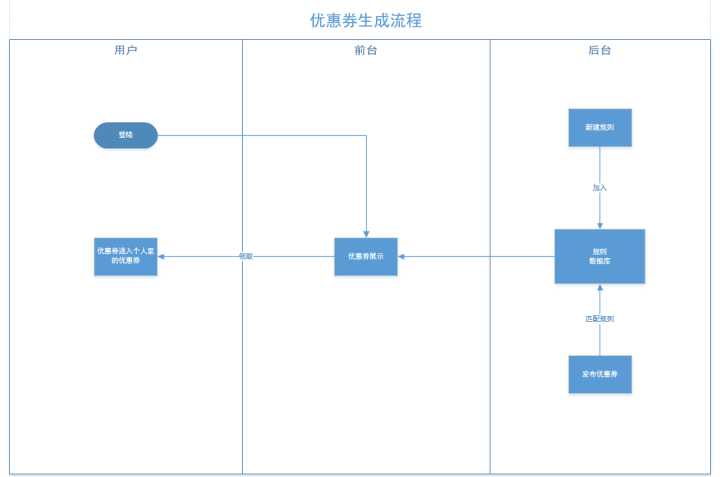 优惠券的设计流程分为。创建、投放、领取、消耗/回收、统计分析五个环节。