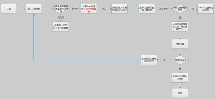 好,说到这里优惠券可能有的朋友就说移动端应该差不多了吧,但其实不然,移动端还需要考虑优惠券的展现形式,形成“闭环”。优惠券的逻辑无非就是:
