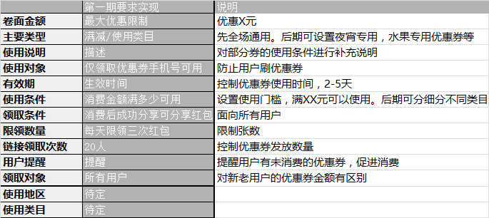 上面Kevin提了7个问题,请各位读者认真想想,其实这就是Kevin在设计优惠券的时候所想的问题