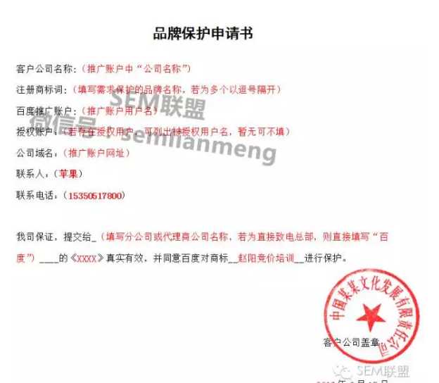 品牌保护申请书,并没有固定格式要求,SEM联盟栗子君给各位整理出两份《品牌保护申请书》模版。