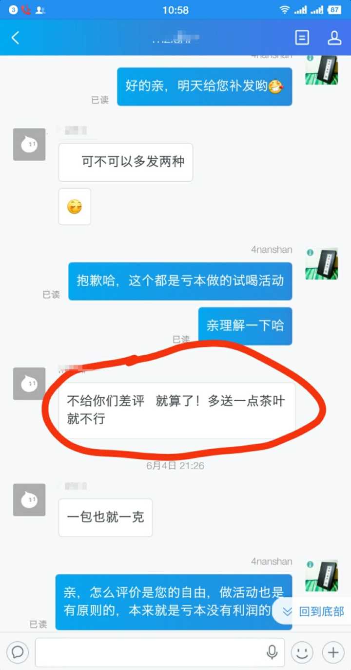 前几天有个买家说我少发了两包茶叶,一共就七小包,且他说的那两种茶是放在最底下的,当然无从考证,毕竟没有监控,也有可能就是我恍惚了漏发了,好吧,本着再小的客户,再小的单子(9.9的包邮亏本试喝活动)也要服务好的原则,答应补发。