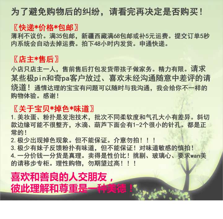 1. 卖家为了更好的产品经营体现,只能提前做好危机公关意识,将一些难缠的、任性的、吹毛求疵等等买家排除门外,避免中差评影响后续的顾客购买欲望;而实际,绝大多数的买家看到类似的痛述,都会理性购买;