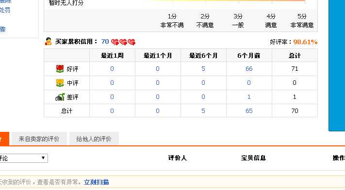 99.5%的好评率的买家被屏蔽的飘过~个人觉得这是对买家的不公平条约~这样让店铺看起来满眼都是好评率~有意义么?淘宝感觉越来越维护卖家~个人觉得这是产品设计不动脑的结果~对淘宝越来越不爱~