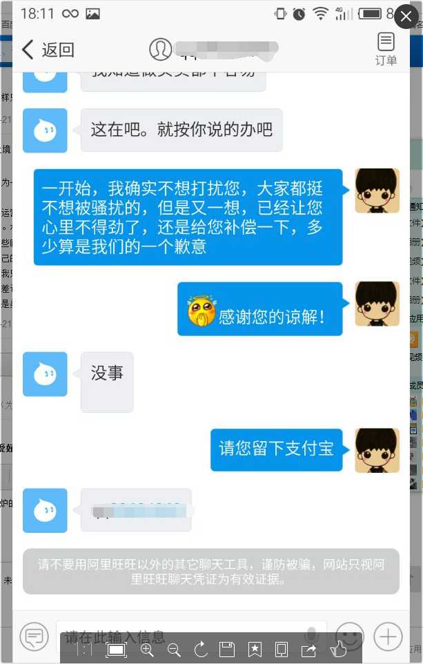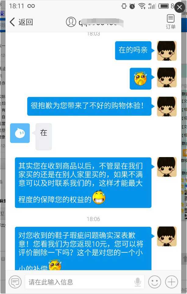 后来越想越害怕。。看见买家头像亮着,就去说了。。。
