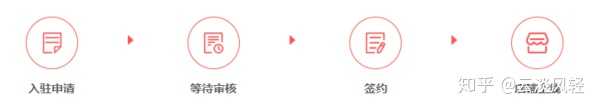 开店流程四步骤:入驻申请—等待审核—签约—店铺上线,如图所示: