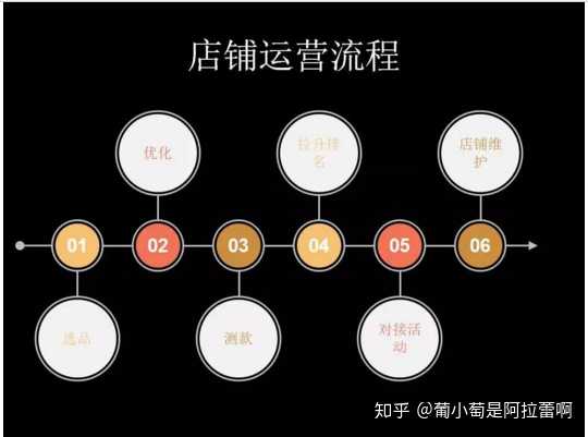 但是越系统越细化,它每一项里面的内容都会不停的扩展,越来越复杂,所以大家必须先总的店铺的操作阶段,从选品到优化、测款、拉升排名、对接活动、店铺维护,整体的运营是通过这个流程下去的,而我们的细化要在每一部的操作内容去扩展。
