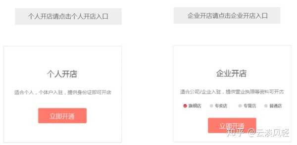 注意:这里有分个人开店和企业开店两种类型,企业又分别有(旗舰店,专卖店,专营店,普通店)四个选择类型。