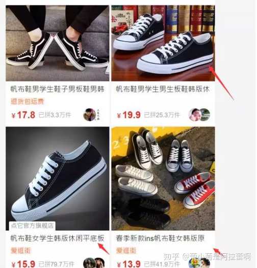 确定好自己需要操作的类目后,要找同款竞争相对较小的产品去操作。这款帆布鞋成本价应该是十一块左右,大家可以看到搜索这个关键词,出来的都是一模一样的款,而且都是差不多的价格。如果我们去做这个产品,肯定竞争不过人家,所以我们要找竞争相对较小的。
