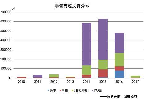 根据新财观察,零售商超领域自2014年以来投资极为活跃,早期项目、中期项目以及IPO后的项目均表现出投资的快速增长。