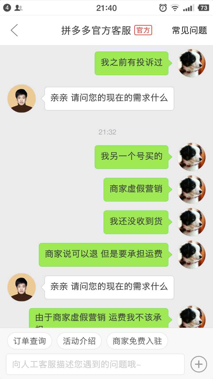 现在货在路上,还没到呢,想着拒收或者退货。于是我去联系商家和拼多多在线客服。商家是 广东 东莞那边的。卖假冒产品凭什么还要运费自理?