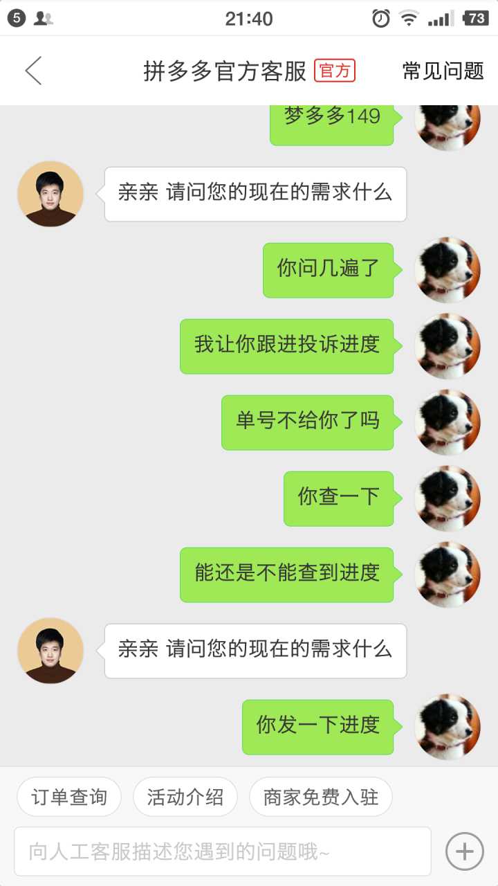我耐心的和他解释,他来来回回重复那两句话,后来有点激怒我了,我两分钟不理他马上就把窗口关了。对用户很不尊重,记得一个客服叫梦多多149号,另一个不追究了。
