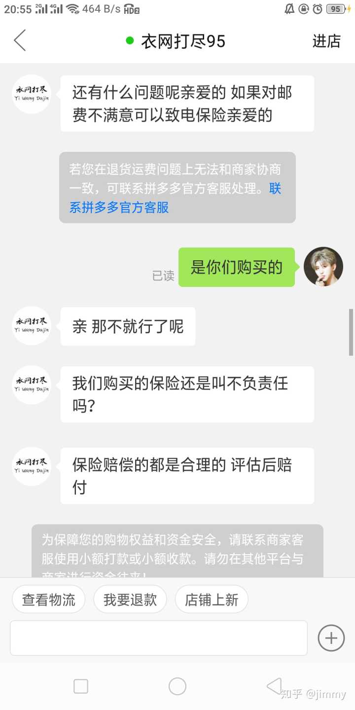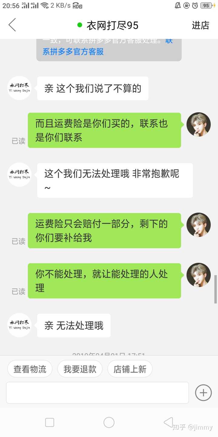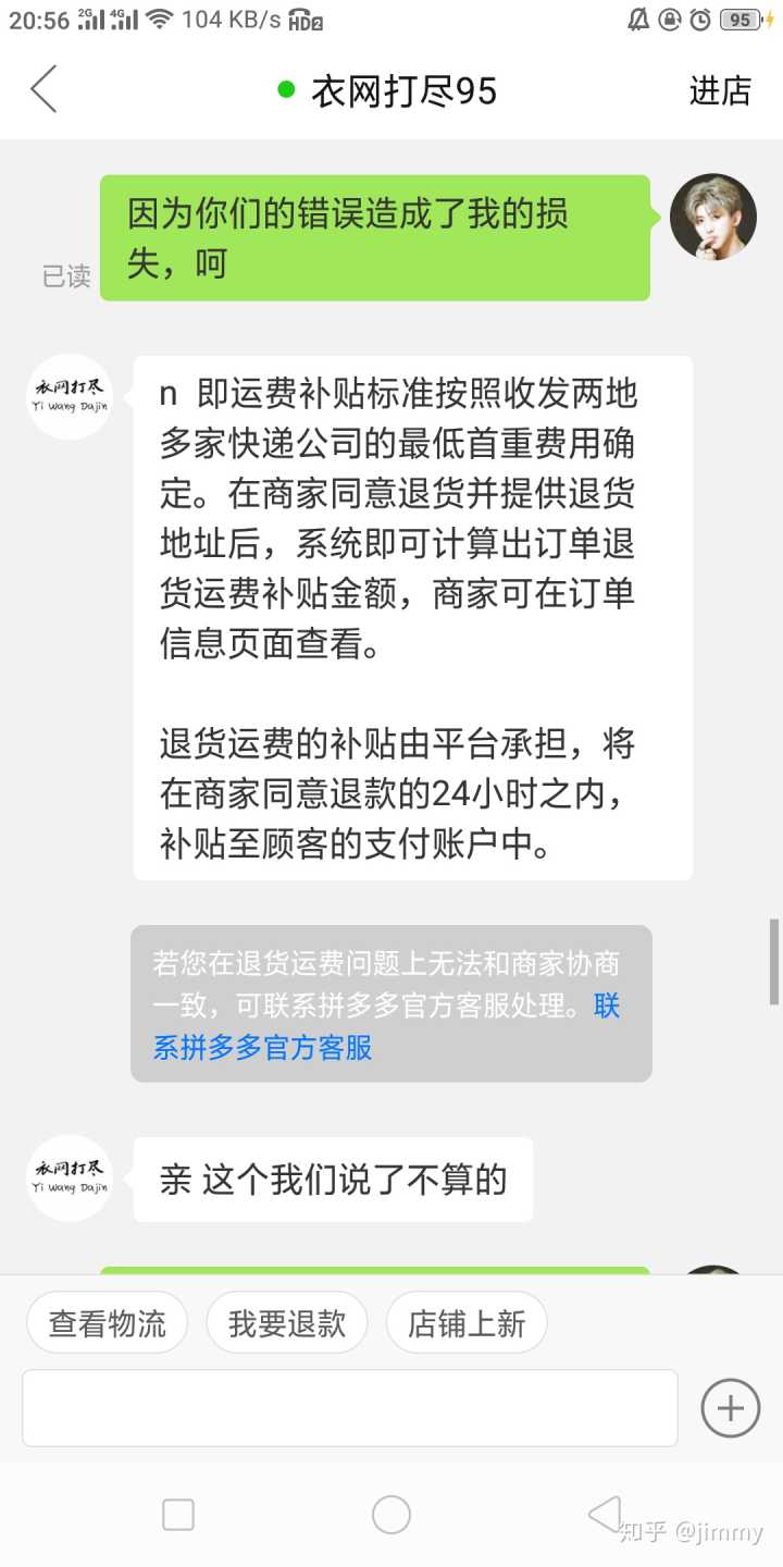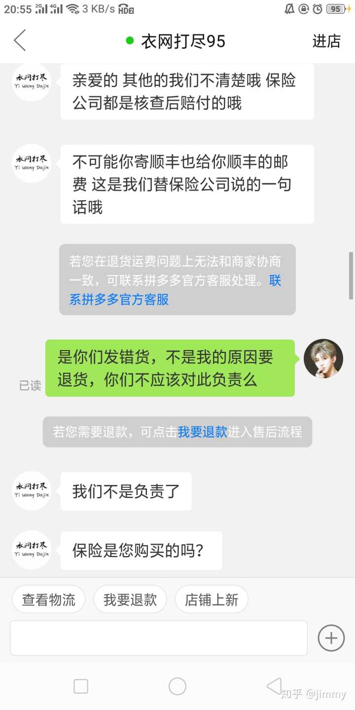 我和客服说了这个情况,问他们打算让我退货还是换一条,然后一周之后那个客服也没说怎么处理,期间我问了好几次,客服都说正在上报。我等不了了,在拼多多官方客服的建议下,发起了退货。退货之前,店铺客服向我保证他们会承担运费,然后我就退了