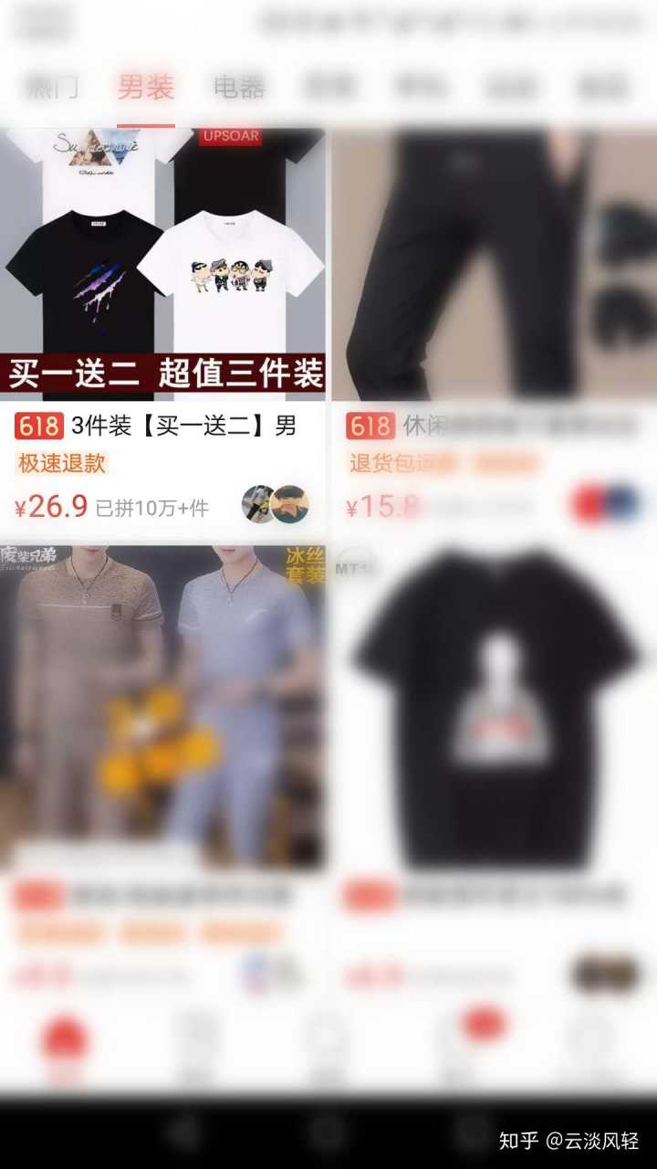 当我们想买男装的时候,然后打开拼多多这个软件。点到男装类目,众多男装中,最吸引眼球的是什么?