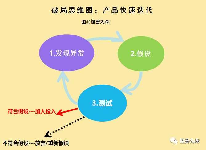 假如你觉得还可以更加完善你的产品迭代或营销方式,同样可以继续按照“发现异常——假设——测试”的破路思路来找到更合适的方法