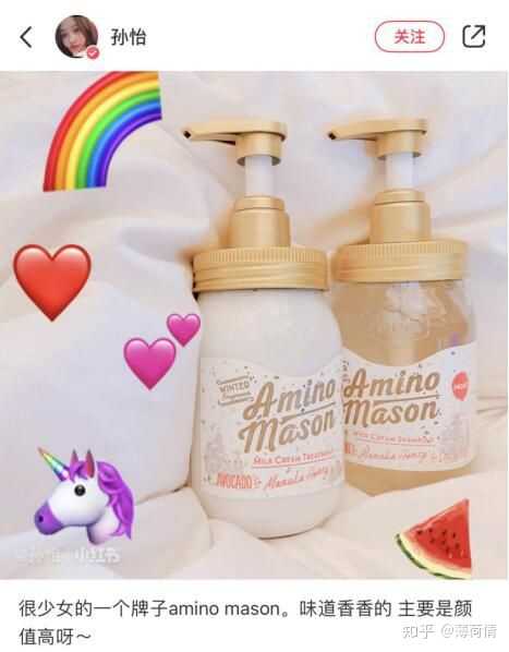 这两年主打氨基酸配方的产品特别多,而Amino Mason洗发水在产品配方升级方面做得尤为突出,独特的氨基酸配方融合了形成秀发的角蛋白和18种氨基酸,深入渗透受损部分,修复滋润损伤之后,在秀发的表面加上一层保护衣。温和有效的治愈受损的毛鳞片,令秀发不再干枯蓬乱。看似打了张旧牌,却能精准的抓住消费者痛点,并深入挖掘需求,这正是Amino Mason洗发水备受明星及网红推介的前提。