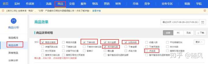 宝贝稀缺度、市场容量、款式竞争力、基础数据、内容呈现情况(详情)等。