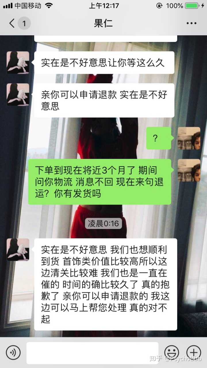 12月中买的东西原本说好3.4周可以到的,结果等了将近3个月还没到,期间问物流情况消息已读不回,微信找也是根本不回,态度奇差,第一次碰到这么做生意的1月中旬说已经在清关,但迟迟没有物流消息,今天实在受不了语气重了点问卖家,结果让我申请退款,