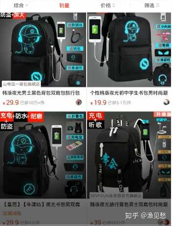 比如我们搜 夜光书包男
