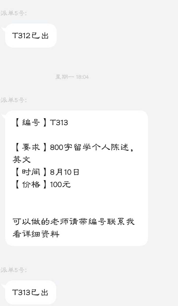 我认识一个研究生,一个月要给女朋友零花钱,还要还房贷,租房费,他跟我一样帮别人写这个,但是他理科,更厉害了,稿费更高,英文也一样,英文几百个单词,一百块。