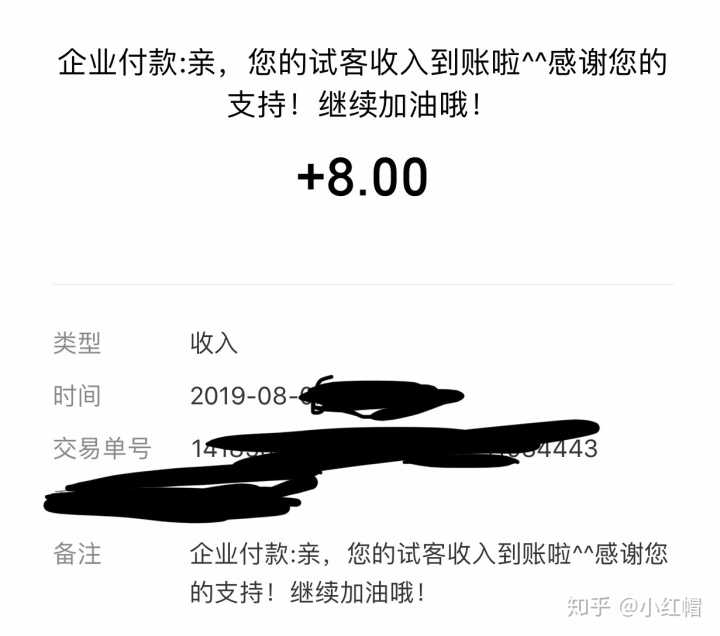 别人转账支付宝的图撒,也是我的收益,有篇结的,第一个是月结的,大叔很可靠,而且稿费同比较高,我现在把他作为主要客户,其他随便接接。