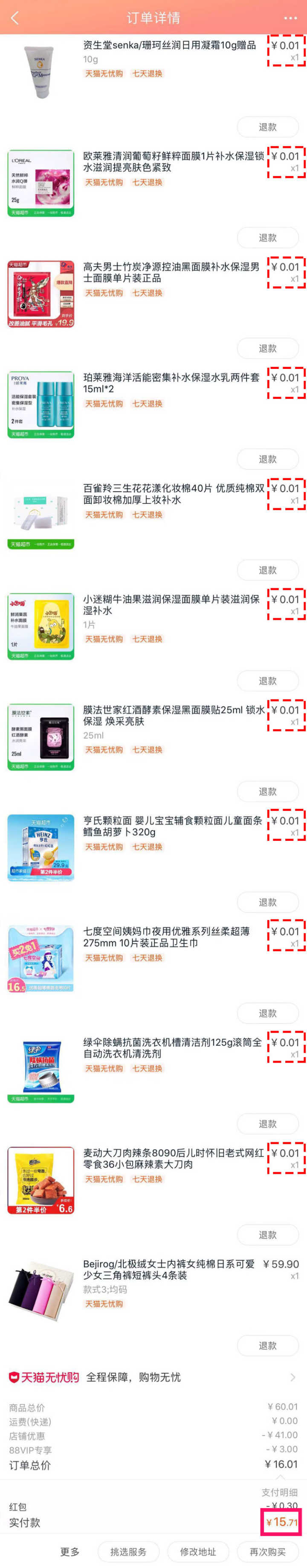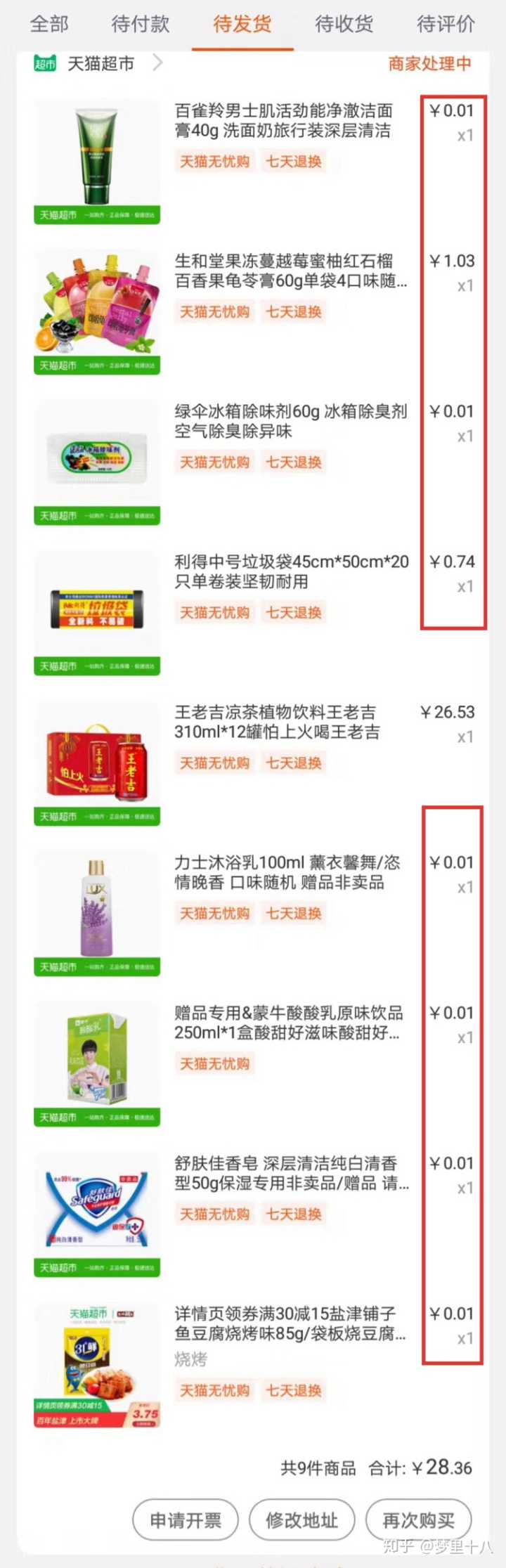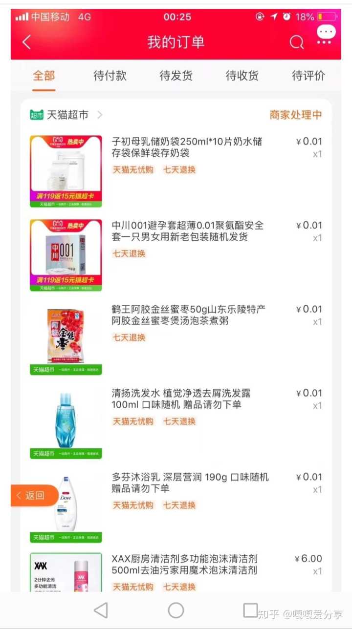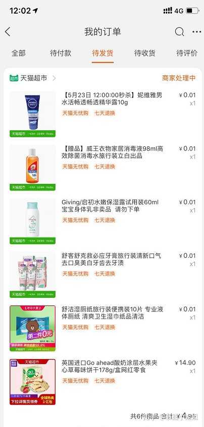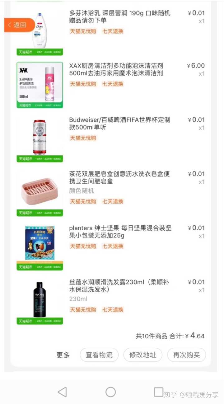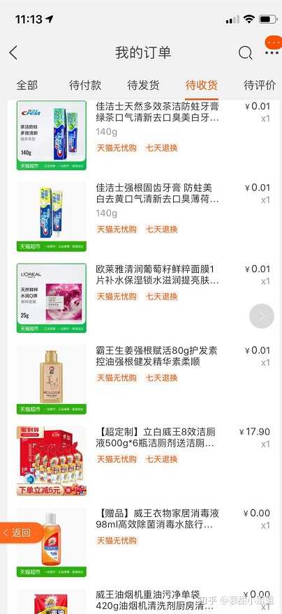 平台每天还推出天猫超市一分购、每日免单,简直就是捡了大便宜,好多是日常用品,总有适合你的那一款。我每次都果断下手,快递一收一大包。