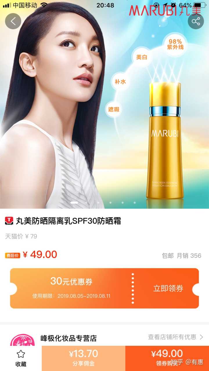 妈蛋,一个个广告软文截图搞得飞起、我只发一个图,佣金全部秒杀他们,淘宝标题:丸美防晒隔离乳SPF30防晒霜面部隔离遮瑕防水防紫外线专柜正品,不服气的来对比,这才是最省钱的淘客软件。专业。